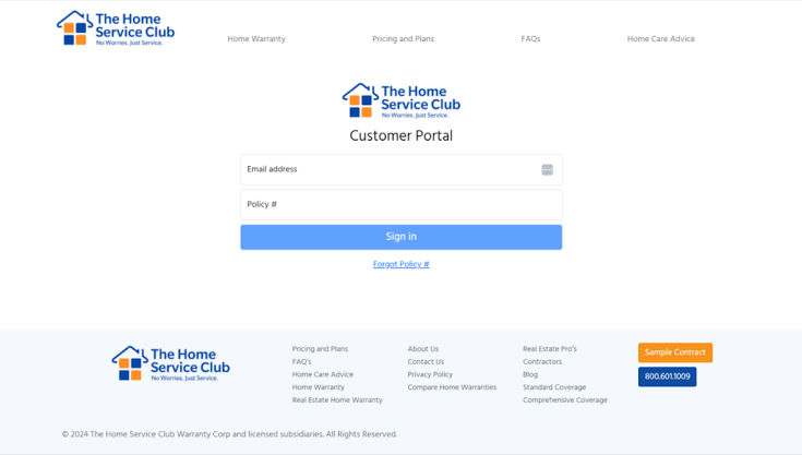 1. How do I log into my Home Service Club account?